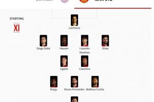 曼聯(lián)首發(fā):31-拉門斯;23-盧克·肖、6-利桑德羅·馬丁內(nèi)斯、26-海文、2-達(dá)洛特;18-卡塞米羅、25-烏加特、8-B費(fèi);13-多爾古、10-庫尼亞、30-舍什科