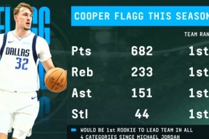 體育資訊1月8日訊 據(jù)統(tǒng)計,本賽季弗拉格有四項數(shù)據(jù)在隊內(nèi)第一,有望成為繼喬丹之后首位做到這一點的新秀。