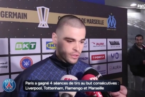 體育資訊1月9日訊 周四在科威特城,巴黎圣日耳曼隊(duì)以2比2(點(diǎn)球大戰(zhàn)4比1)戰(zhàn)勝馬賽隊(duì),門(mén)將舍瓦利耶成為球隊(duì)再度問(wèn)鼎法國(guó)超級(jí)杯的大功臣。比賽中他做出多次關(guān)鍵撲救,并兩次撲出點(diǎn)球。賽后,舍瓦利耶在接受采訪時(shí)回味著這一榮耀時(shí)刻,直言如果能一直像今天這樣表現(xiàn)出色,那么自己可能成為世界上最好的門(mén)將。