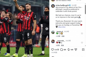 菲爾克魯格社媒寫道:“為我在圣西羅的首秀感到非常自豪,盡管我更希望能以一場勝利來慶祝!