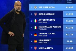 1-瓜迪奧拉,曼城,20.3億