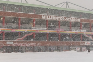 周五上午,情況變得越來越明朗。漢堡周四已經(jīng)下了大雪,而從周五早上開始,暴風雪“艾莉”加劇了雪情。米勒門球場周圍一片雪白,部分地區(qū)甚至出現(xiàn)了積雪。