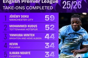 體育資訊1月10日訊 squawka統(tǒng)計(jì)了本賽季英超成功過人情況,多庫力壓庫杜斯居首。
