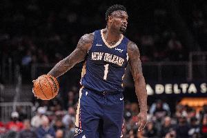鵜鶘內(nèi)線錫安上半場(chǎng)依舊打得十分兇猛,他單打沖擊內(nèi)線勢(shì)不可擋,多次打成2+1。