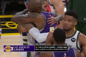 這是湖人本賽季第14次經(jīng)歷關(guān)鍵時刻(最后5分鐘分差5分以內(nèi))的比賽,此前他們13場全勝,今天不敗金身被破。