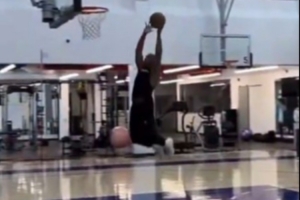 據(jù)快船隨隊記者Law Murray報道,克里斯·保羅在洛杉磯Playa Vista的老快船訓(xùn)練基地練習(xí)扣籃。