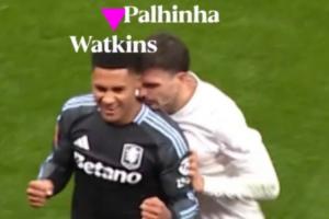 在終場(chǎng)哨聲吹響后,維拉前鋒沃特金斯來(lái)到底線面向看臺(tái)慶祝,看似有意無(wú)意的身體接觸惹惱了帕利尼亞,后者將沃特金斯推搡出場(chǎng)外,瞬間點(diǎn)燃兩隊(duì)球員的情緒。