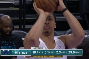 黃蜂VS爵士,轉(zhuǎn)播方曬圖,黃蜂球員格蘭特-威廉姆斯今天復(fù)出上演賽季首秀。