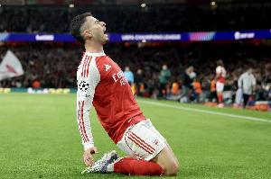 數(shù)據(jù)統(tǒng)計顯示,馬丁內(nèi)利為阿森納共計出戰(zhàn)249場,終獲首個帽子戲法。也是他首次為槍手在單場比賽頭槌雙響。
