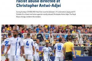 安蒂-阿杰伊描述道:“我聽到了不好的言語。這些是種族歧視的辱罵,這種東西任何時候都不應該出現在這里。有人叫我‘該死的黑鬼’?!彼€表示已經向警方報案,當地警方已經展開調查。