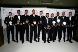 曼城的詹姆斯-特拉福德因上賽季隨伯恩利升級而被評為英冠年度最佳球員。理查德-科內(nèi)憑借在韋康比流浪者隊的出色表現(xiàn)贏得了英甲年度最佳球員獎,而布羅姆利的邁克爾-奇克則獲得了英乙年度最佳球員獎。