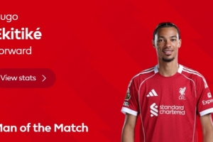 此役?;倏藶槔锲制崎T,英超官方宣布,他當(dāng)選本場比賽最佳球員。