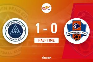 上半場比賽結束,深圳新鵬城主場暫時1-0領先梅州客家。