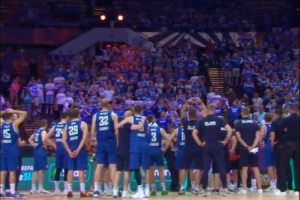 賽后,冰島的球迷們并沒有離場,而是和冰島男籃同在,在現(xiàn)場一起高歌。