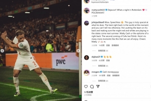 他也在賽后通過社媒曬出自己的高爾夫揮桿慶祝照,并配文:“似曾相識!鹿特丹之夜晚真是棒極了????波蘭隊(duì)!”