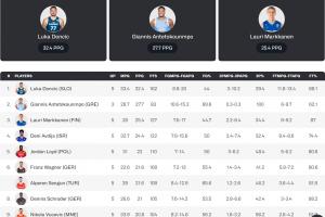 小組賽得分榜,東契奇場(chǎng)均32.4分傲視群雄,字母哥小組賽場(chǎng)均得分排名第二,命中率更是來(lái)到夸張的69.6%。