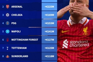 體育資訊9月5日訊 2025年五大聯(lián)賽的夏窗已經(jīng)落下帷幕,德國(guó)轉(zhuǎn)會(huì)市場(chǎng)統(tǒng)計(jì)了在夏窗過(guò)后,全隊(duì)身價(jià)漲幅最多的球隊(duì)排行榜,有的是因?yàn)閺?qiáng)援加盟,有的是因?yàn)殛?duì)內(nèi)球員身價(jià)上漲。