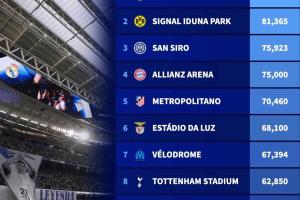 新賽季歐冠10大容量最大球場:伯納烏83186人居首