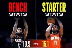體育資訊9月30日訊 美媒Clutchpoints曬出了火箭球員塔里-伊森上賽季打先發(fā)和打替補(bǔ)時(shí)的數(shù)據(jù)對(duì)比。