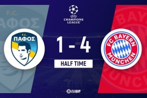 體育資訊10月1日訊 北京時間10月1日凌晨3:00,歐冠聯(lián)賽階段第2輪,帕福斯在斯泰利奧斯基里亞基迪斯體育場迎戰(zhàn)拜仁。上半場凱恩雙響,格雷羅建功,杰克遜破門,奧利塞兩助攻,金玟哉解圍失誤,奧爾西奇遠射破門,拜仁暫4-1帕福斯。