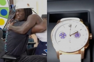 詹姆斯首先贈予Kai Cenat的一只價值20萬美元的愛彼手表,隨后又向全體直播團隊成員每人贈送了一雙個人第23代簽名戰(zhàn)靴Nike LeBron 23。