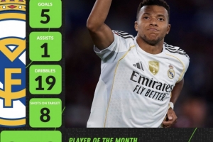 姆巴佩在9月的4場(chǎng)西甲打進(jìn)5球,助攻1次。期間完成19次成功過人,8次射正目標(biāo)。Whoscored評(píng)分達(dá)到了8.53分。
