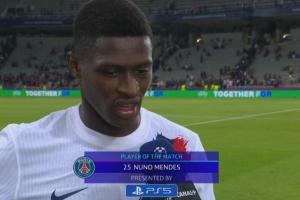 此役努諾-門(mén)德斯踢滿全場(chǎng)送出助攻,幫助巴黎取勝,他當(dāng)選本場(chǎng)比賽最佳球員。