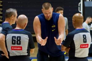 在對抗賽結(jié)束之后,約基奇拉著三位裁判討論判罰的具體細節(jié),記者稱,約基奇拉著三位裁判問了大約20分鐘。