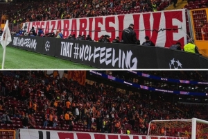 體育資訊10月3日訊 《巴黎人報(bào)》報(bào)道,在加拉塔薩雷1-0戰(zhàn)勝利物浦的歐冠比賽中,加拉塔薩雷球迷拉出許多橫幅,聲援巴勒斯坦民眾。