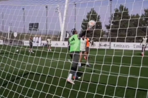 皇馬正在備戰(zhàn)這場比賽,瓊阿梅尼在訓(xùn)練中側(cè)身勾射破門,技驚四座,隊友紛紛驚呼。