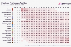 此役過后,數(shù)據(jù)機(jī)構(gòu)OPTA超級計(jì)算機(jī)預(yù)測本賽季英超冠軍↓