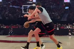 10月5日開拓者球迷嘉年華活動,楊瀚森秀腳步,單打克林根勾手命中