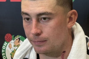 當(dāng)記者問及他頸部有血痕時,普理查德表示:“訓(xùn)練營里的對抗像打仗一樣?!?/p>