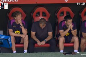 體育資訊10月6日訊 慢鏡頭給到萊萬罰點(diǎn)瞬間,弗里克低頭不敢看,隨后萊萬離譜打偏!