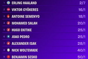 哈蘭德成為本賽季英超僅需的大熱門,這也反映在賠率上,因為挪威射手奪得英超金靴的賠率僅為2/7。