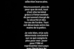 “幸運(yùn)的是,驚嚇大于傷害,事件在安保人員和執(zhí)法部門的及時介入下迅速平息。目前一切已交由警方處理。我現(xiàn)在很好,也已將注意力重新放在最重要的事情上:為馬賽效力,并在即將到來的國家隊(duì)集訓(xùn)中自豪地代表祖國出戰(zhàn)?!?/p>