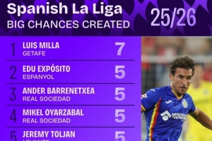 體育資訊10月7日訊 日前,Squawka統(tǒng)計(jì)了本賽季西甲創(chuàng)造進(jìn)球機(jī)會次數(shù)排行,拉菲尼亞、居勒爾4次并列第六。