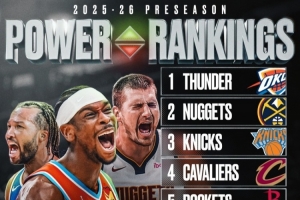 體育資訊10月8日訊 美媒Basketball Forever在賽季正式開打之前評(píng)選出的季前球隊(duì)實(shí)力榜TOP10。其中雷霆排在第一,掘金第二,尼克斯排在第三。