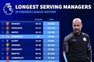 英超歷史主帥任職時長榜:溫格、弗格森前二,瓜迪奧拉第四