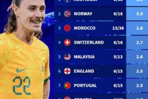 體育資訊10月9日訊 德轉統(tǒng)計2025年至今參加5場以上比賽的各國國家隊戰(zhàn)績,澳大利亞、挪威六戰(zhàn)全勝高居第一。