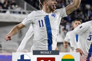 體育資訊10月10日訊 世預(yù)賽歐洲區(qū)小組賽G組第7輪比賽,芬蘭在主場以2-1的比分戰(zhàn)勝立陶宛。本場比賽之后,先賽的芬蘭暫時位居小組榜首。