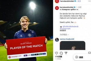 體育資訊10月10日訊 丹麥國家隊(duì)官方宣布,霍伊倫當(dāng)選6-0白俄羅斯的球迷票選最佳球員。