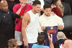 賽后,布克的模仿者和布克合影留念,并獲得布克的親簽球衣,對此,布克說道:“很高興看到中文布克。因為空間的距離,我以為我們相遇的希望渺茫,但中國賽是相遇的完美地方。我最終給了他我的比賽球衣?!?/p>