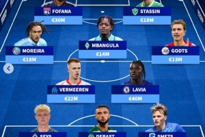 中場:費爾梅倫(馬賽,2200萬歐)、拉維亞(切爾西,4000萬歐)、迭戈-莫雷拉(斯特拉斯堡,1800萬歐)、姆班古拉(不萊梅,1400萬歐)、米卡-霍茨(阿賈克斯,1300萬歐)