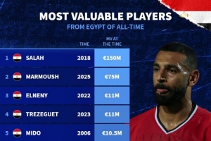 埃及球員歷史身價榜:薩拉赫1.5億歐居首,馬爾穆什7500萬歐次席