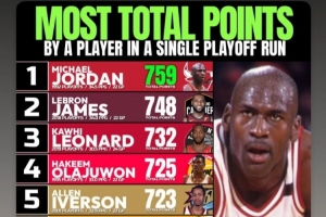 奧尼爾曬單次季后賽總分:92喬丹759分第1 18詹第2 19卡第3 SGA第9