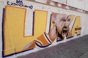 這幅壁畫是以東契奇的名字“LUKA”為背景,在字母的基礎上繪制了東契奇怒吼的畫像。