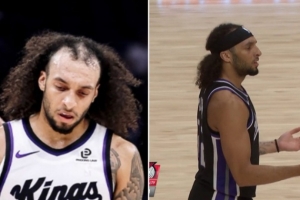 在此前對(duì)陣猛龍的季前賽中,國(guó)王官方社媒曬出的一張照片可以看到德文-卡特的發(fā)際線已經(jīng)非常靠上了,而這張圖也迅速在網(wǎng)絡(luò)上流傳。而在上一場(chǎng)對(duì)陣開(kāi)拓者的比賽,德文-卡特就帶上了發(fā)帶遮蓋發(fā)際線。