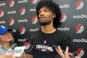 開拓者今日隊內(nèi)訓(xùn)練,訓(xùn)練后夏普接受采訪談到了楊瀚森,小吧整理了部分采訪內(nèi)容。