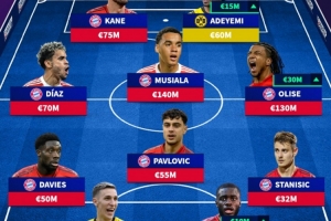前鋒:凱恩(拜仁慕尼黑,7500萬(wàn)歐元)、阿德耶米(多特蒙德,6000萬(wàn)歐元)